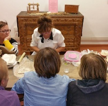 Le attività del laboratorio iniziano con l’allestimento della postazione individuale e la consegna della Tianedda, contenitore che serve per impastare.